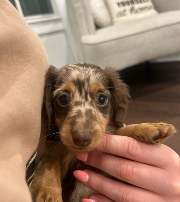 Meet Tall Caramel Macchiato, affectionately known as Doxie. This miniature dachshund puppy is a delightful bundle of joy. With her rich caramel-colored coat, she brings warmth and sweetness wherever she goes.