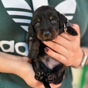 Fiona is an incredibly adorable 2-week-old female Dachshund puppy with soft features and a peaceful, gentle nature.